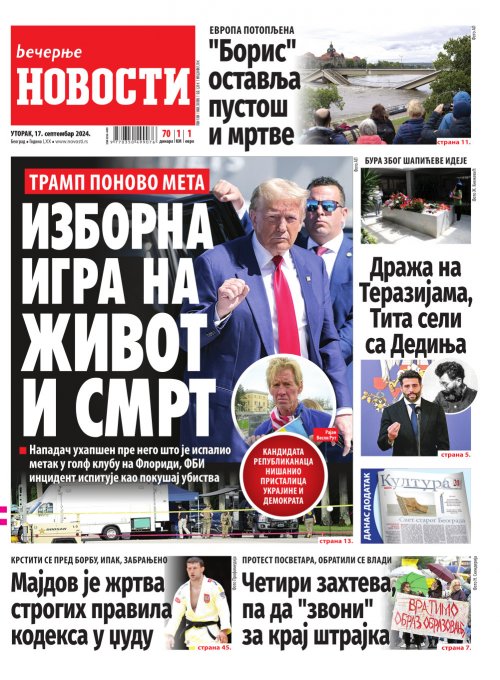 Večernje novosti - Naslovna strana - Štampano izdanje za 17.09.2024.