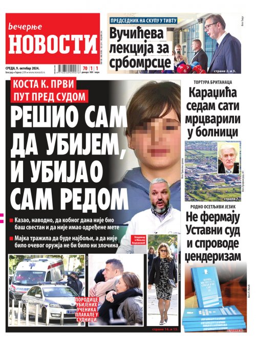 Večernje novosti - Naslovna strana - Štampano izdanje za 09.10.2024.