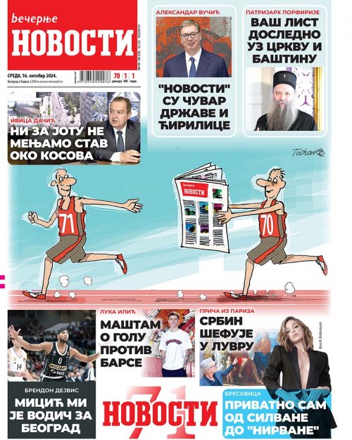 Večernje novosti - Naslovna strana - Štampano izdanje za 16.10.2024.