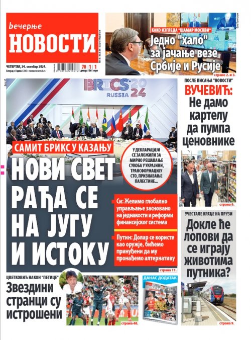 Večernje novosti - Naslovna strana - Štampano izdanje za 24.10.2024.