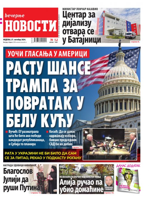 Večernje novosti - Naslovna strana - Štampano izdanje za 27.10.2024.