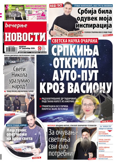Večernje novosti - Naslovna strana - Štampano izdanje za 20.12.2020.