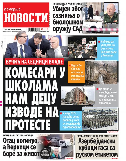 Večernje novosti - Naslovna strana - Štampano izdanje za 18.12.2024.