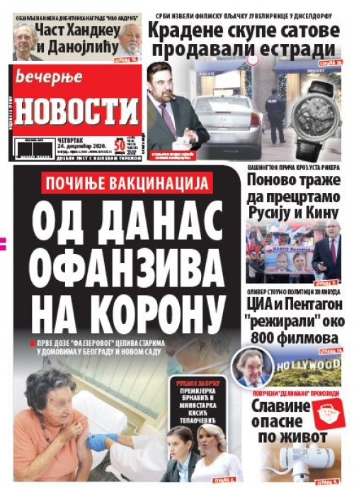 Večernje novosti - Naslovna strana - Štampano izdanje za 24.12.2020.