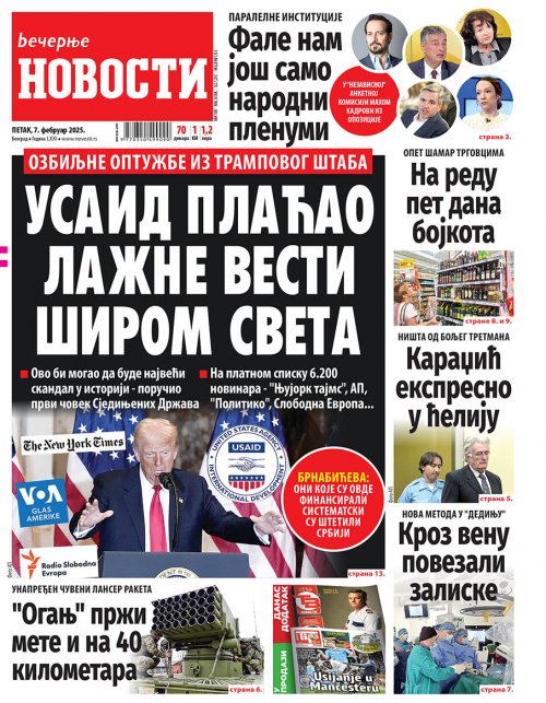 Večernje novosti - Naslovna strana - Štampano izdanje za 07.02.2025.