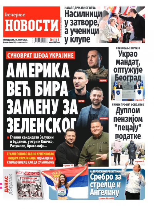 Večernje novosti - Naslovna strana - Štampano izdanje za 10.03.2025.