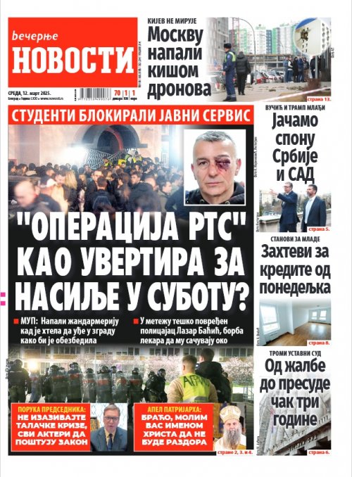 Večernje novosti - Naslovna strana - Štampano izdanje za 12.03.2025.
