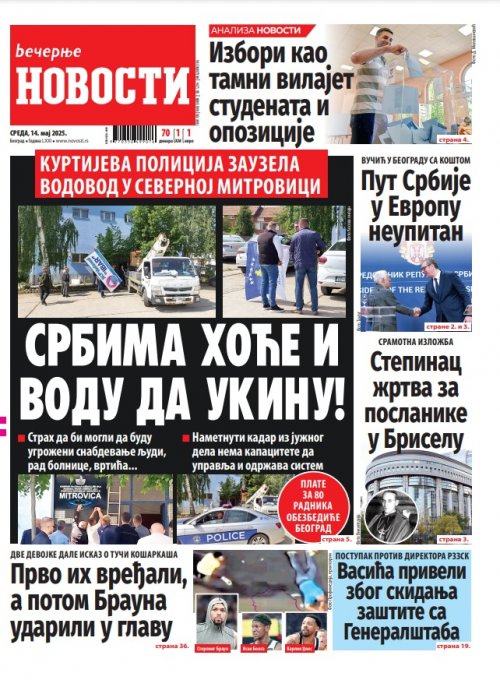 Večernje novosti - Naslovna strana - Štampano izdanje za 14.05.2025.