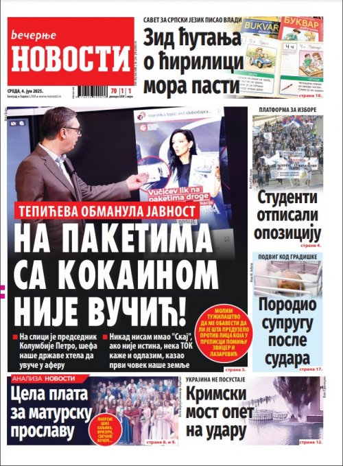 Večernje novosti - Naslovna strana - Štampano izdanje za 04.06.2025.