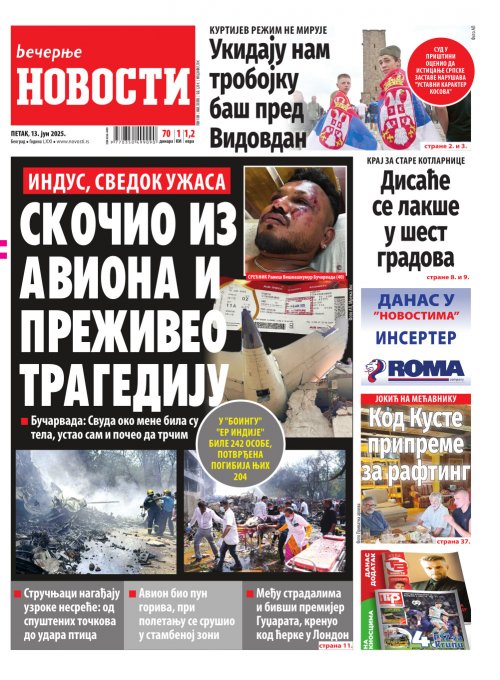 Večernje novosti - Naslovna strana - Štampano izdanje za 13.06.2025.