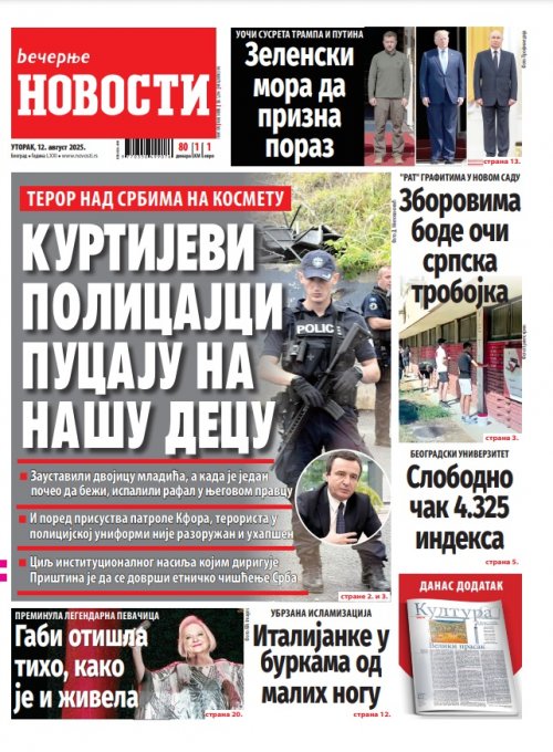 Večernje novosti - Naslovna strana - Štampano izdanje za 12.08.2025.