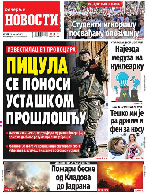 Večernje novosti - Naslovna strana - Štampano izdanje za 13.08.2025.