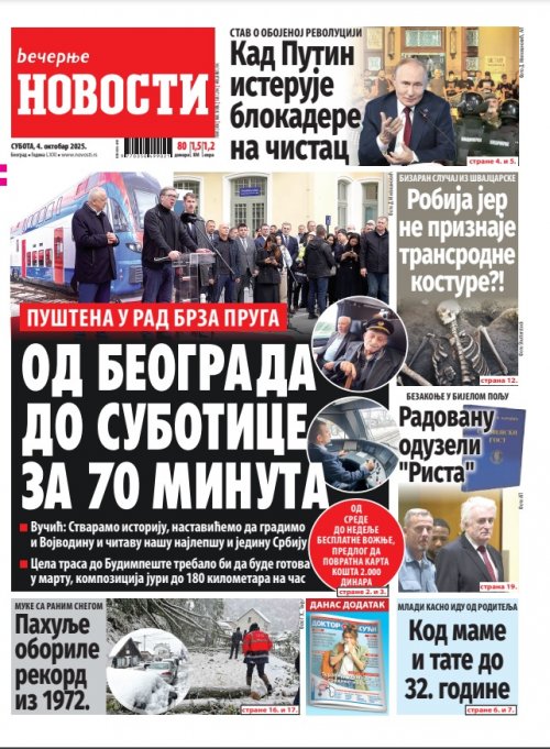 Večernje novosti - Naslovna strana - Štampano izdanje za 04.10.2025.