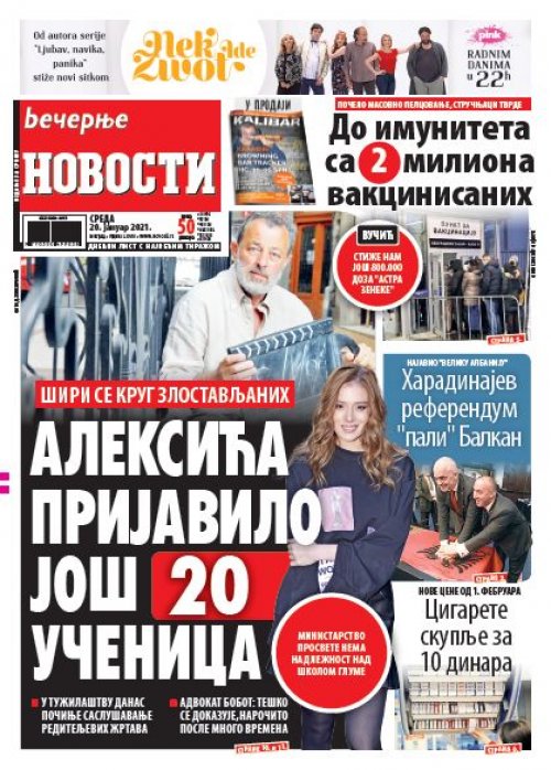 Večernje novosti - Naslovna strana - Štampano izdanje za 20.01.2021.