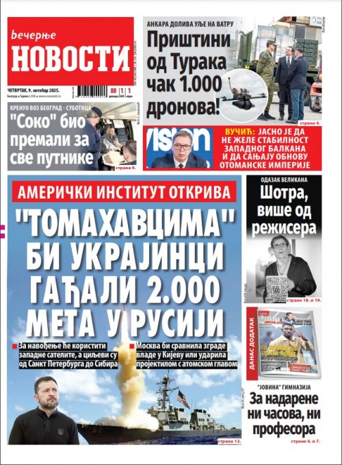 Večernje novosti - Naslovna strana - Štampano izdanje za 09.10.2025.