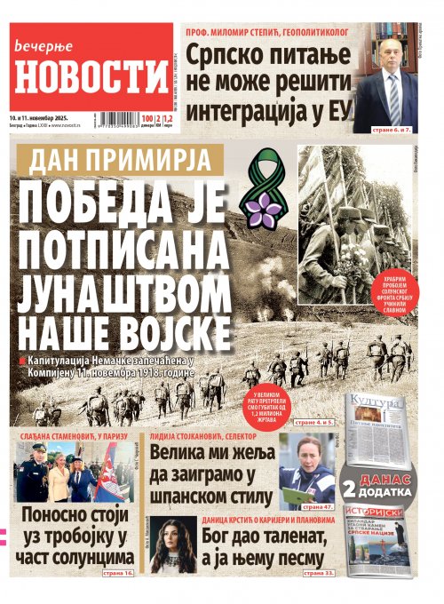 Večernje novosti - Naslovna strana - Štampano izdanje za 10.11.2025.