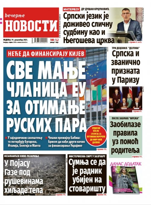 Večernje novosti - Naslovna strana - Štampano izdanje za 14.12.2025.