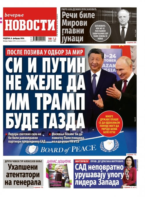 Večernje novosti - Naslovna strana - Štampano izdanje za 08.02.2026.