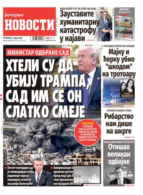 Večernje novosti - Naslovna strana - Štampano izdanje za 05.03.2026.