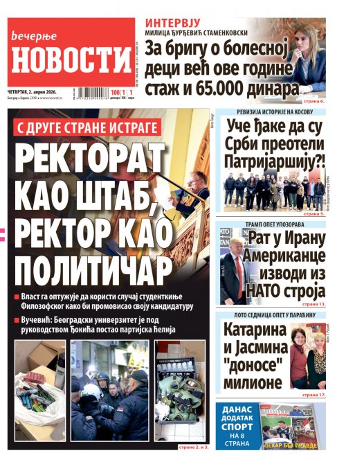 Večernje novosti - Naslovna strana - Štampano izdanje za 02.04.2026.