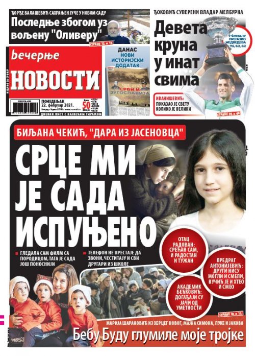 Večernje novosti - Naslovna strana - Štampano izdanje za 22.02.2021.