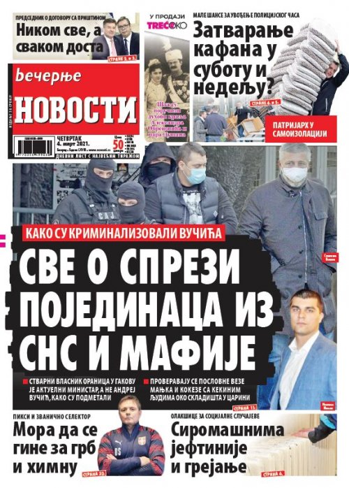Večernje novosti - Naslovna strana - Štampano izdanje za 04.03.2021.