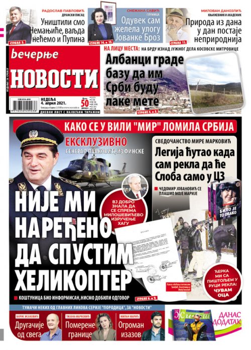 Večernje novosti - Naslovna strana - Štampano izdanje za 04.04.2021.