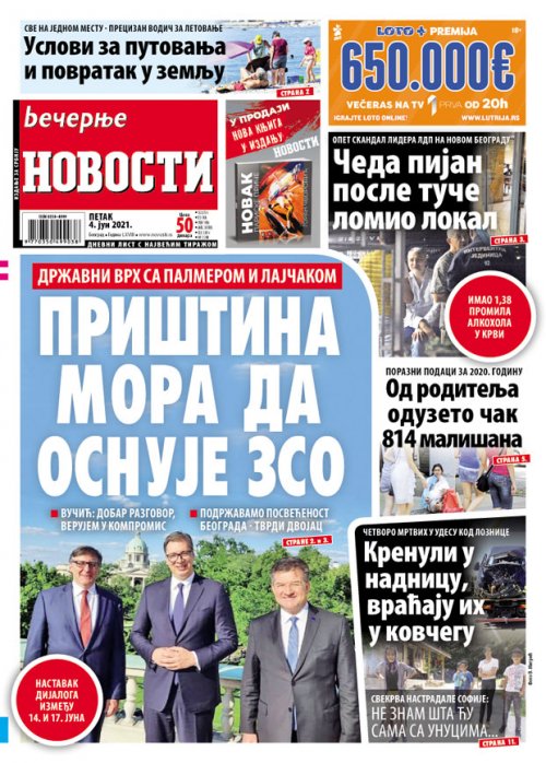 Večernje novosti - Naslovna strana - Štampano izdanje za 04.06.2021.