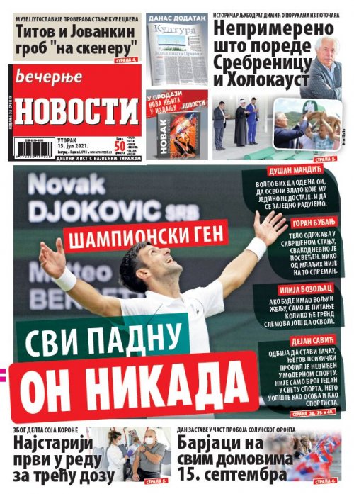 Večernje novosti - Naslovna strana - Štampano izdanje za 13.07.2021.