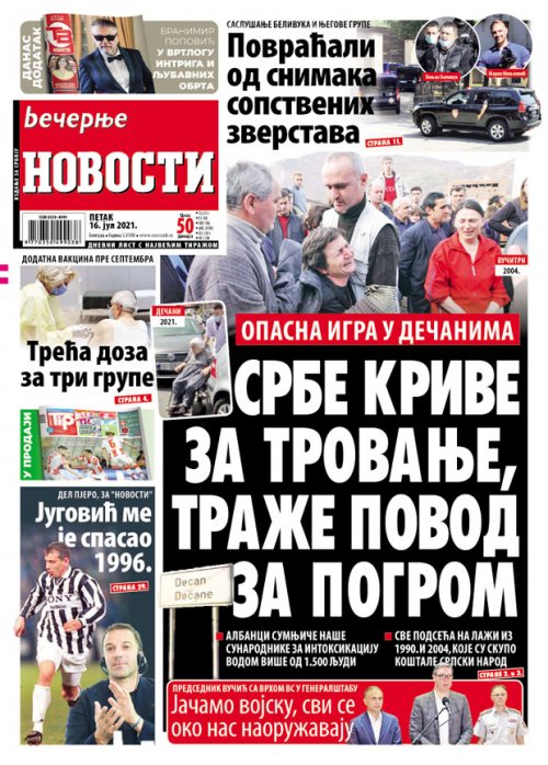 Večernje novosti - Naslovna strana - Štampano izdanje za 16.07.2021.