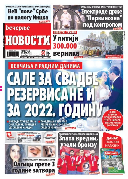 Večernje novosti - Naslovna strana - Štampano izdanje za 29.07.2021.