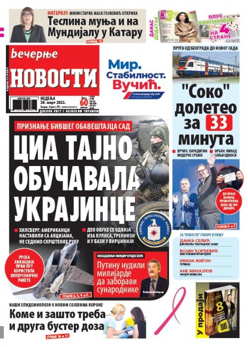 Večernje novosti - Naslovna strana - Štampano izdanje za 20.03.2022.