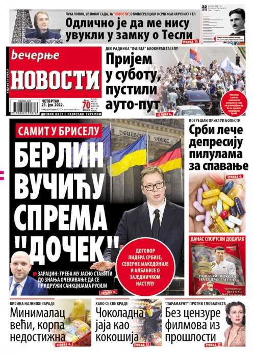 Večernje novosti - Naslovna strana - Štampano izdanje za 23.06.2022.