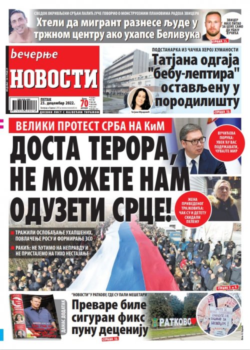 Večernje novosti - Naslovna strana - Štampano izdanje za 23.12.2022.