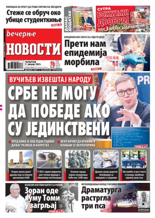 Večernje novosti - Naslovna strana - Štampano izdanje za 05.01.2023.