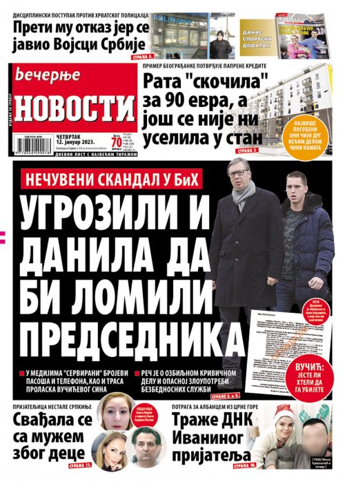 Večernje novosti - Naslovna strana - Štampano izdanje za 12.01.2023.
