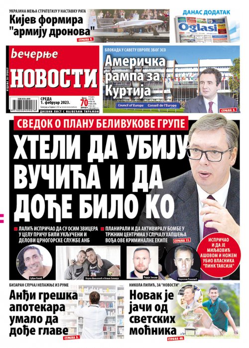 Večernje novosti - Naslovna strana - Štampano izdanje za 01.02.2023.