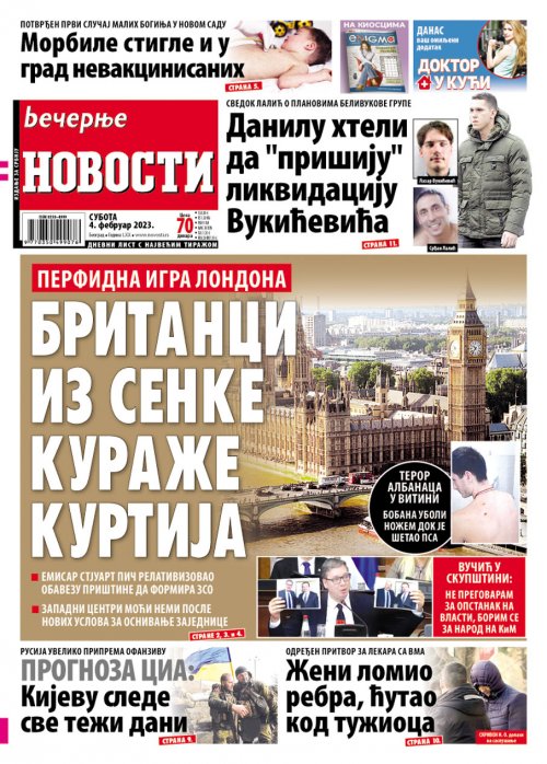 Večernje novosti - Naslovna strana - Štampano izdanje za 04.02.2023.