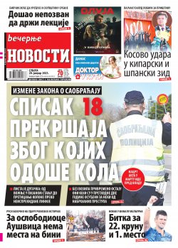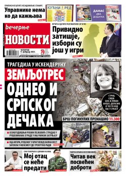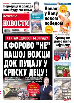 Večernje novosti - Naslovna strana - Štampano izdanje za 18.03.2023.