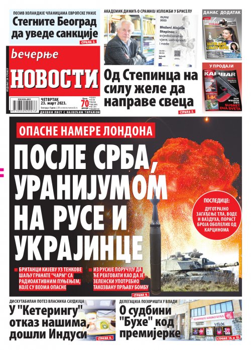 Večernje novosti - Naslovna strana - Štampano izdanje za 23.03.2023.