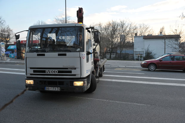 U Ustaničkoj ulici preko puta broja 67, odakle svakog dana odnose automobile, služba prenosa "Parking servisa" pravi ozbiljan saobraćajni prekršaj