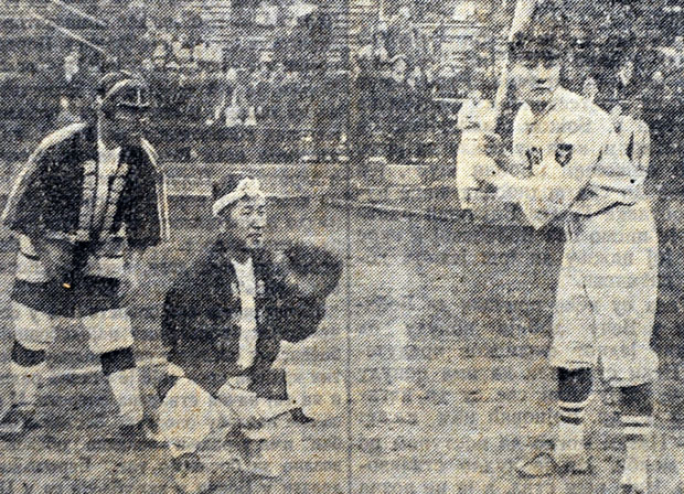 Demonstracija novog sporta 1935. godine, u pauzama posećenih fudbalskih mečeva. Na predstavljanju "najpopularnijeg američkog sporta" u Beogradu nije bilo ozbiljnijeg odziva