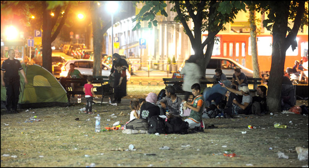 Veš koji se suši na drveću i ogradi u parku kod dolaznih perona Beogradske autobuske stanice, stotine migranata koji leže na travi, postala je svakodnevna slika u ovom delu