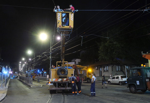 Radi se maksimalno, a kako i ne bi kada ceo posao na rekonstrukciji voždovačke saobraćajnice mora da bude gotov do 31. jula. A radnici, pod "budnim okom", u fluorescentnim prslucima, zatezali su kontaktnu mrežu za tramvaje bez "hvatanja krivine".
