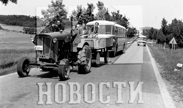 - Na fotografiji na kojoj je traktor krivac za sporu vožnju, dok mu je jedan autobus za leđima a drugi je krenuo u preticanje, sva vozila imaju isti motor! To je šestocilindrični benzinac koji je pravljen u Industriji motora u Rakovici, s tim da su autobusi sklapani u mariborskoj fabrici TAM.