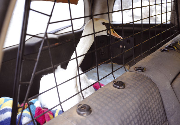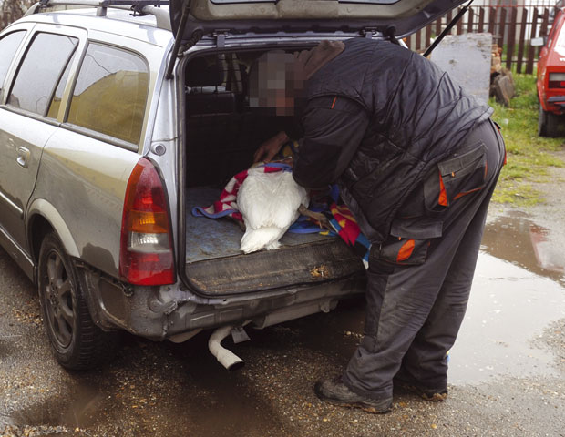 I tako je raskošni labud, u gepeku automobila, otplovio do Palića, gde će se ponovo naći u svojoj prirodnoj sredini.