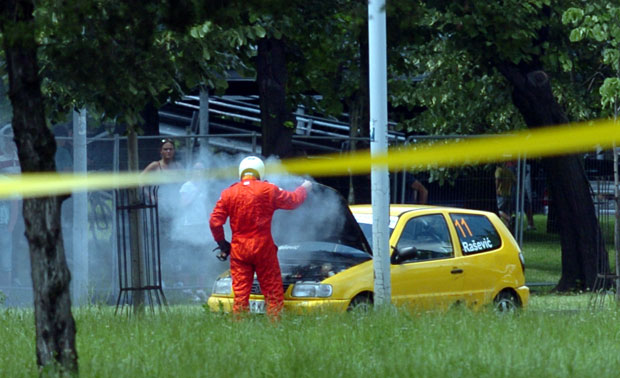 Nedugo zatim takmičenje je prekinuo - sudar! "Zastava" se preprečila na stazi kada se druga zakucala u nju oko 13.15 kod restorana "Ušće". Srećom, vozači nisu bili povređeni, a nadmetanje je nastavljeno za 15 minuta.