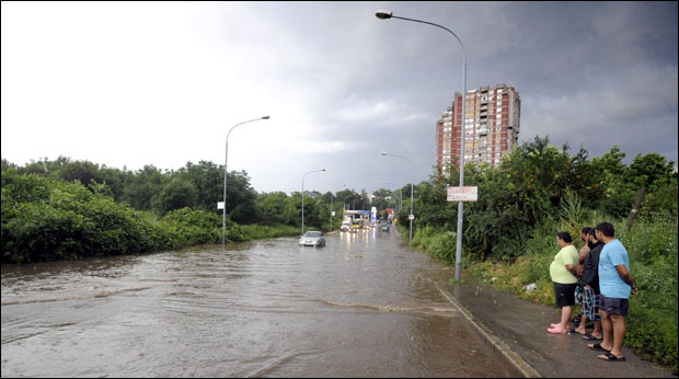 Dispečeri GSP- a kažu da je zbog pljuska i poplavljenih ulica isključeno napajanje tramvaja strujom, a da se autobusi teško kreću.