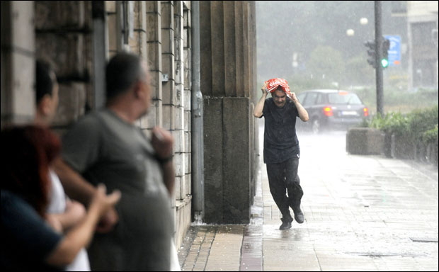 Pljusak koji je počeo oko 18.30 ubrzo je doneo grad, koji je u pojedinim delovima Beograda padao četiri puta za manje od jednog sata.