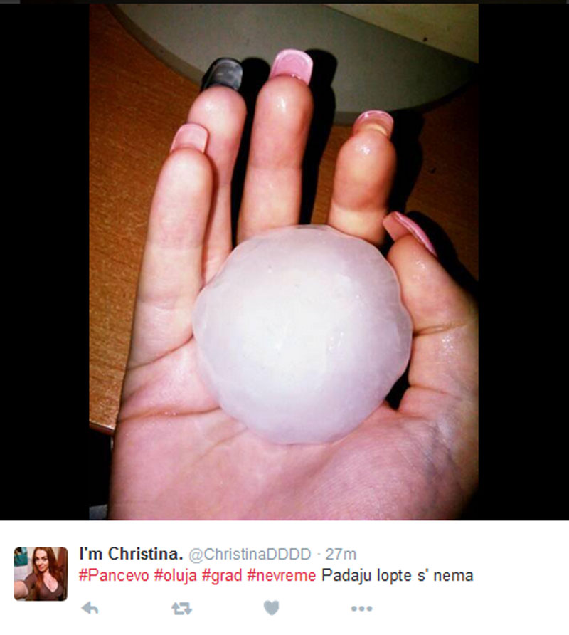Nemojte bez šlema napolje! Zvezdara pod grudvama leda! #nevreme #led pic.twitter.com/JMJ6PklvkN